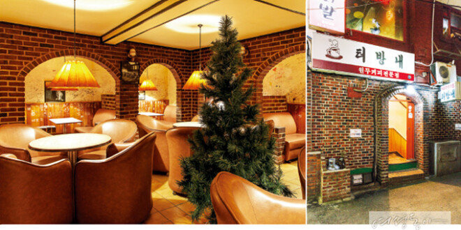 오래된 아치형 벽돌 문이 가던 발걸음을 멈추게 한다. 삐걱거리는 나무 계단을 밟고 내려가면 1980년대로 회귀한 듯한 전경이 펼쳐진다. 빛바랜 가죽 소파와 은은한 불빛을 뿜는 조명 등 시간이 멈춰버린 듯한 카페 ‘터방내’는 30년이 넘도록 같은 자리를 지키고 있다. 커피를 내리는 방식도 30년 동안 같은 방법을 고수하는데, 증기의 압력으로 커피를 뽑아내는 사이폰을 사용한다. 주전자에 물을 올려 끓이고 사이폰 기구 안에 원두가루를 넣고 알코올램프를 이용해 커피를 뽑는 모습을 지켜보는 것도 꽤나 재미있다. 손님들이 많이 찾는 음료는 플롯트로 아이스커피에 아이스크림과 약간의 과일이 들어가며, 크림커피처럼 부드럽고 연한 맛이 특징이다.