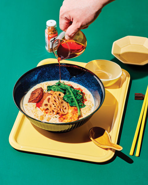 두유를 사용해 만든 진한 돈코츠 국물 같은 맛이 일품이다. 속이 편안해지는 재료만 사용해 아침 식사로 제격이다.