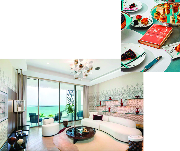바쉐론콘스탄틴이 두바이 만다린 오리엔탈 주메이라 호텔과 협업한 ‘스위트 1755’ 객실(왼쪽). 티파니의 ‘더 블루 박스 카페’에서는 브랜드의 정교한 감각을 엿볼 수 있다.