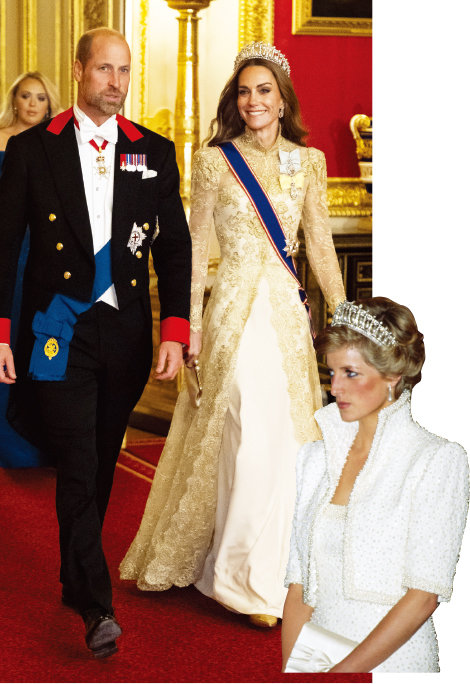 2025년 9월 트럼프 국빈 만찬 당시 2000억 상당의 티아라를 착용한 케이트 미들턴. 해당 티아라는 그녀의 시어머니인 다이애나 빈의 최애 티아라이기도 하다.