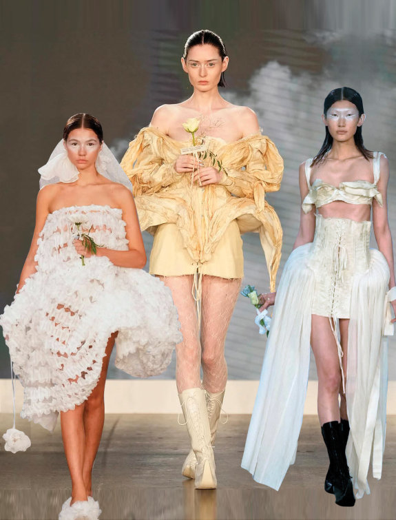 규리킴의 2025 SS 컬렉션. 코르셋과 크리놀린을 활용한 독특한 실루엣이 눈에 띈다.