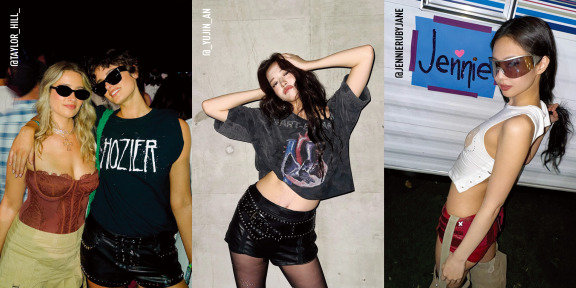 피부에 밀착되는 실루엣과 견고한 핏으로 무장한 가죽 쇼츠는 멋을 위해서라면 계절쯤은 개의치 않는 패피들을 위한 스타일링 무기다. 어딘지 허전한 하의를 채워줄 무릎 위 길이의 롱부츠는 묵직한 존재감을 드러낼 최강의 조합. 압도적인 퍼포먼스로 코첼라의 하이라이트를 장식한 제니가 정석이다. 재킷을 벗고 관객석으로 내려간 제니는 백리스 크롭트 톱에 딥 버건디 컬러의 가죽 쇼츠를 매치하고, 허벅지까지 올라오는 사이하이 부츠와 메탈 프레임 고글 선글라스로 무대 밖의 여운을 이어갔다. 시크한 멋을 극대화하고 싶다면 올 블랙 룩에 주목할 것. 모델 테일러 힐은 블랙 레터링 티셔츠에 알알이 박힌 스터드 가죽 쇼츠로 거침없는 록 시크 무드를 연출했다. 작년 서재페의 여신으로 주목받은 가수 안유진 역시 최근 OOTD에서 페스티벌을 겨냥한 스타일링을 선보였다. 독특한 프린팅 티셔츠에 스터드 벨트로 포인트를 준 가죽 쇼츠와 시스루 스타킹까지 올 블랙으로 통일, 페스티벌 스타일로 손색없는 훌륭한 레퍼런스를 보여주었다.
